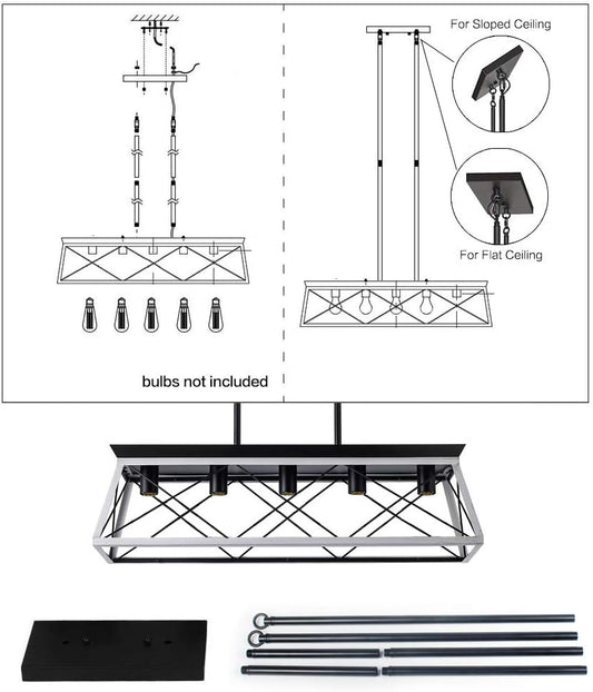 5-Light Farmhouse Pendant Light Fixture | Adjustable Height | Rustic