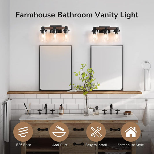 3-Light Farmhouse Bathroom Vanity Lights Over Mirror