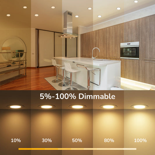6 Pack Smart Ultra Thin LED Recessed Ceiling Lights - Tunable, Dimmable