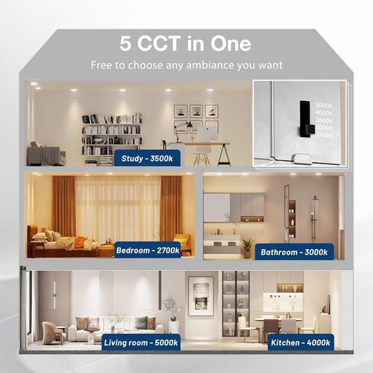 6 Pack Ultra-Thin LED Recessed Ceiling Lights - 5CCT, 12W, 1050LM