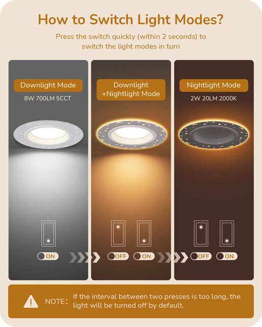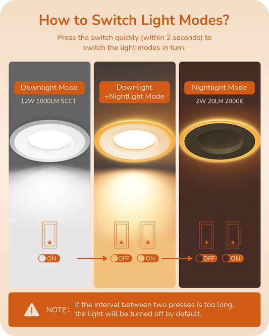 12 Pack 6 Inch 5CCT LED Recessed Lighting with Night Light-HCRL06B