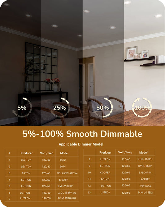 6″ 5CCT CRI90+ 12W 1000LM Dimmable Recessed LED Ceiling Light, 2700/3000/3500/4000/5000K Selectable (12 Pack)-HCRL06A