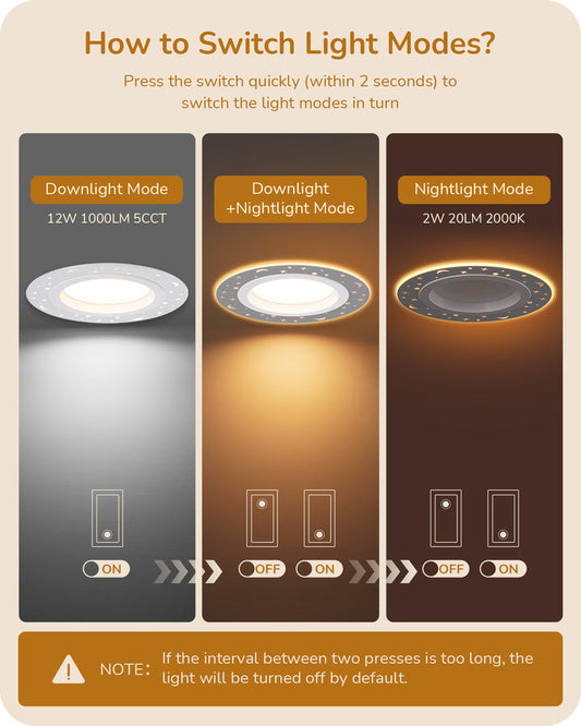 12 Pack 4 Inch 5CCT LED Recessed Lighting with Night Light-HCRL04C